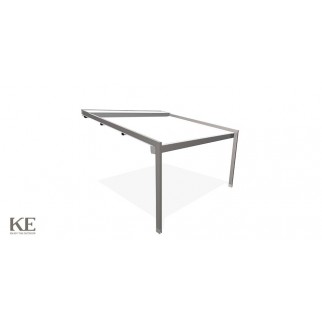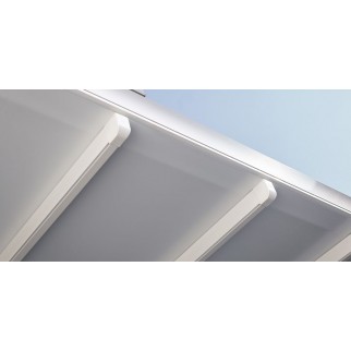 Structure d’ombrage en aluminium avec toiture rétractable à empaquètement avec une membrane fixée à un système de traverses, de chariots et de rails qui permettent le glissement horizontal : – résistance au vent jusqu’à la classe 6